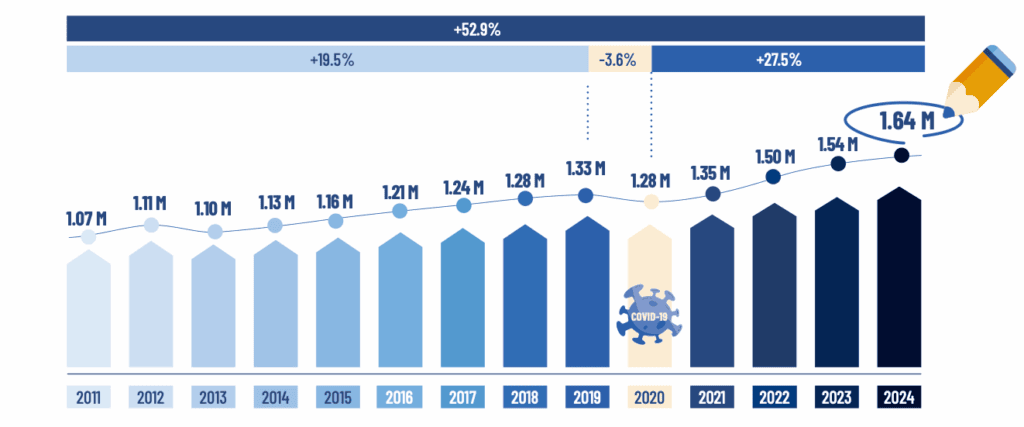 In 2024 sport employment continued grow rapidly overall with a good recovery from the Covid period, but there were national variations.